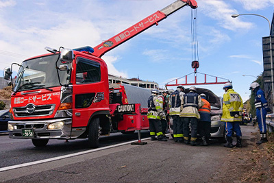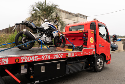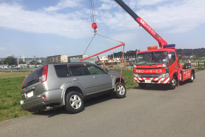 事故でロアアームが折れてしまったり、ハンドルが回らなかったり、積載車に積み込みができない時に使います。