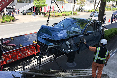 事故の時、どれだけ損傷がひどくでもタイヤが回り